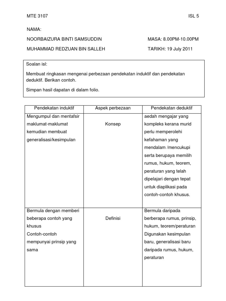 Untuk benar bahwa. Deduktif berarti kita berpindah dari konsep ke contoh sedangkan induktif berarti kita berpindah dari contoh ke konsep. 1 KAEDAH INDUKTIF DAN DEDUKTIF Kaedahinduktifmerupakansalahsatukaedahmengajar yang sesuaidigunakandalampengajaranpelbagaimatapelajaran khususnyaMatematik Sai.